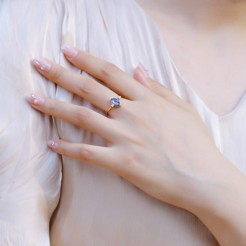 Simple luxury elegant jewelry rings, hand inlaid with exquisite natural lapis lazuli gemstone