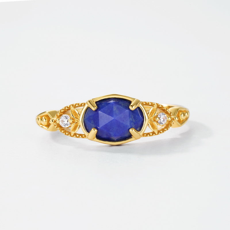 Simple luxury elegant jewelry rings, hand inlaid with exquisite natural lapis lazuli gemstone