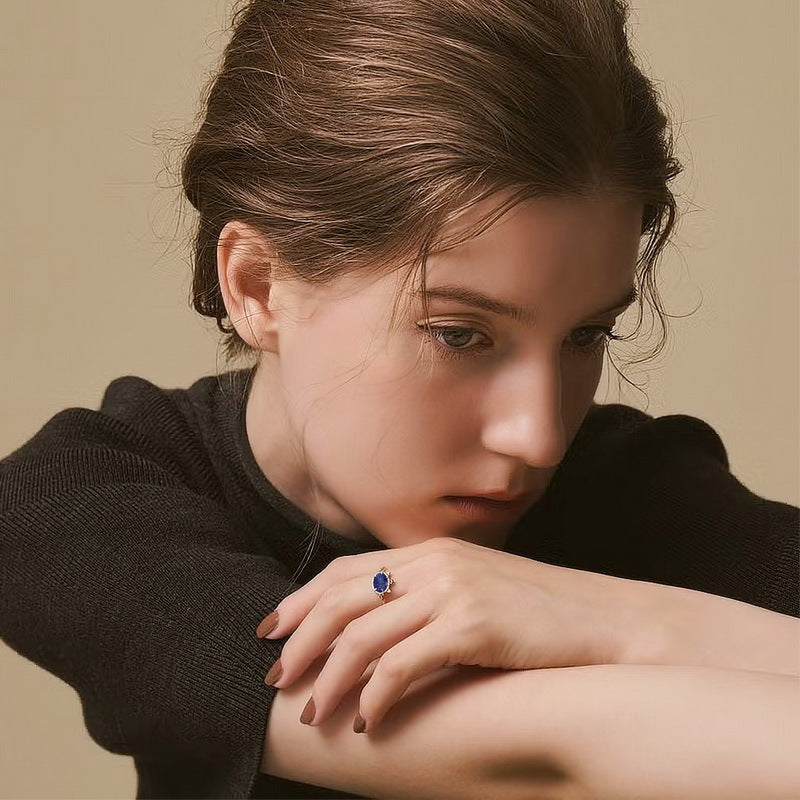 Simple luxury elegant jewelry rings, hand inlaid with exquisite natural lapis lazuli gemstone