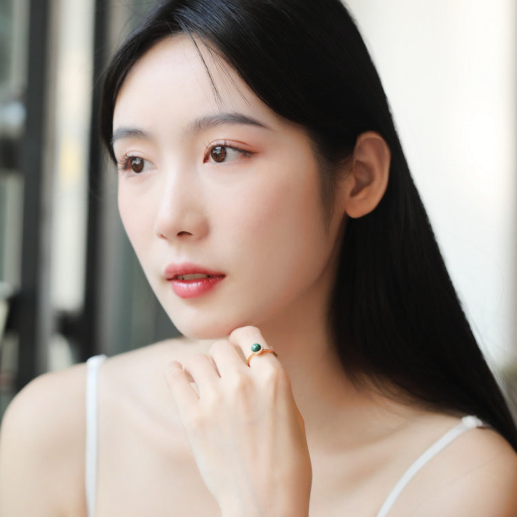 Simple luxury elegant jewelry rings, inlaid with exquisite natural malachite gemstone
