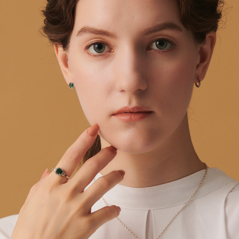 Simple luxury elegant jewelry rings, inlaid with exquisite natural malachite gemstone