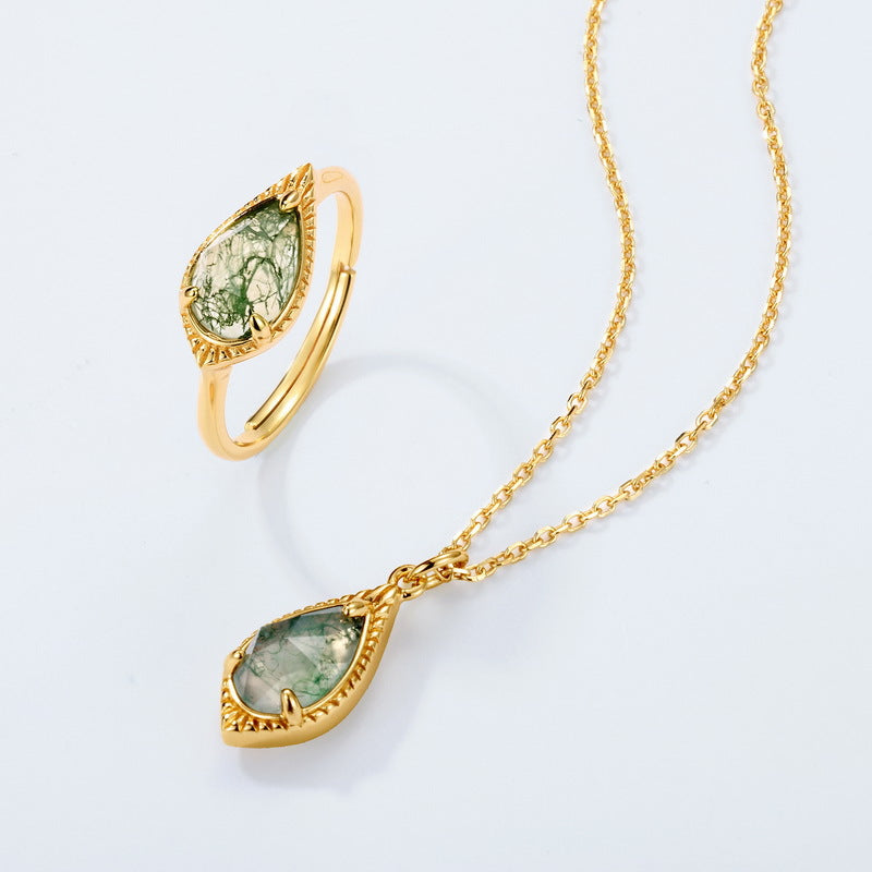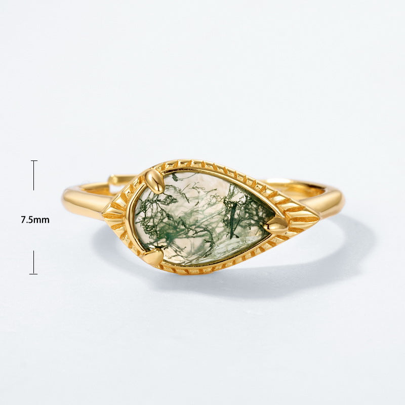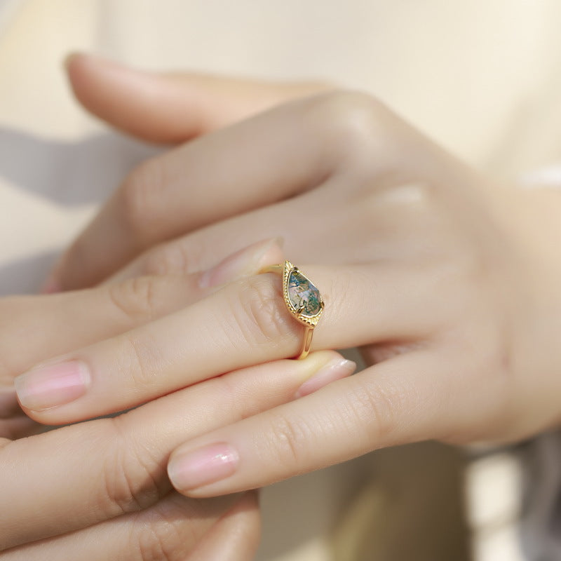 Simple luxury elegant jewelry rings, hand inlaid with exquisite natural moss agate gemstone