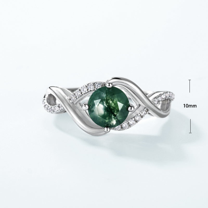 Simple luxury elegant jewelry rings, hand inlaid with exquisite natural moss agate gemstone