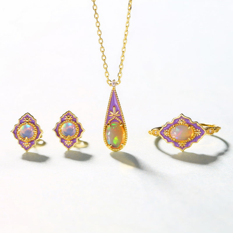 S925 Sterling Silver Jewelry Ring Natural Opal Gemstone Enamel Craft Vintage Style Rings