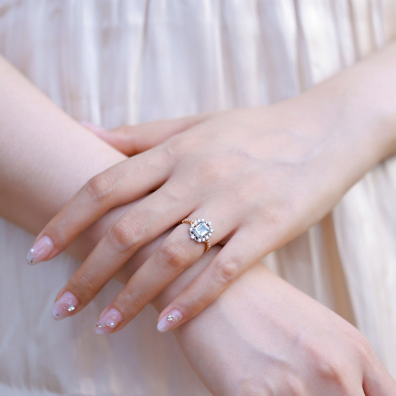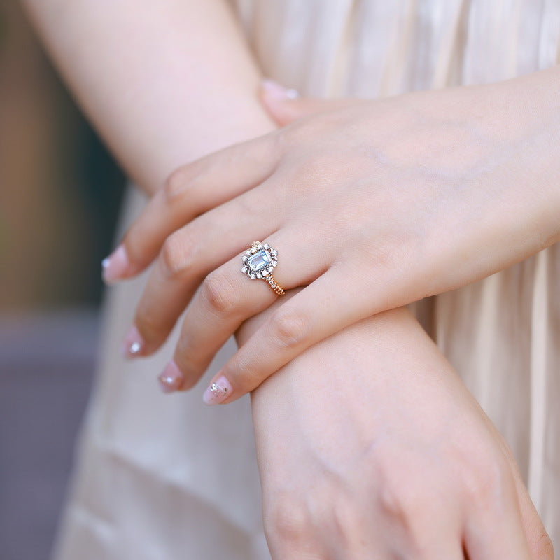 Simple luxury elegant jewelry rings, hand inlaid with exquisite sky blue topaz gemstone