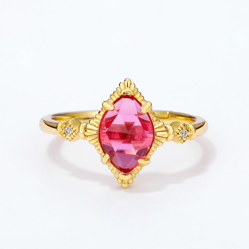 Simple luxury elegant jewelry ring, hand inlaid with exquisite synthetic ruby gemstone