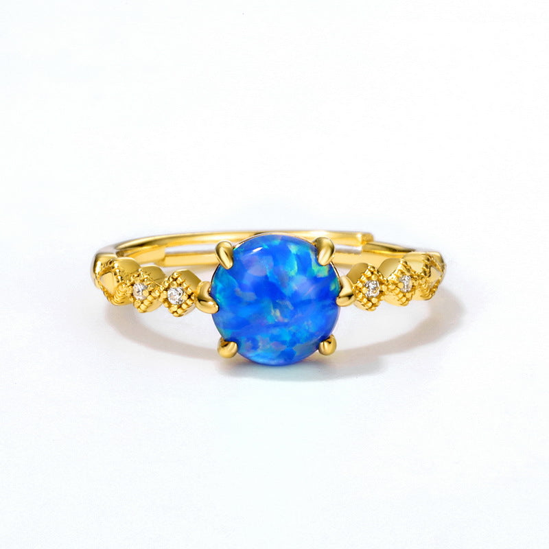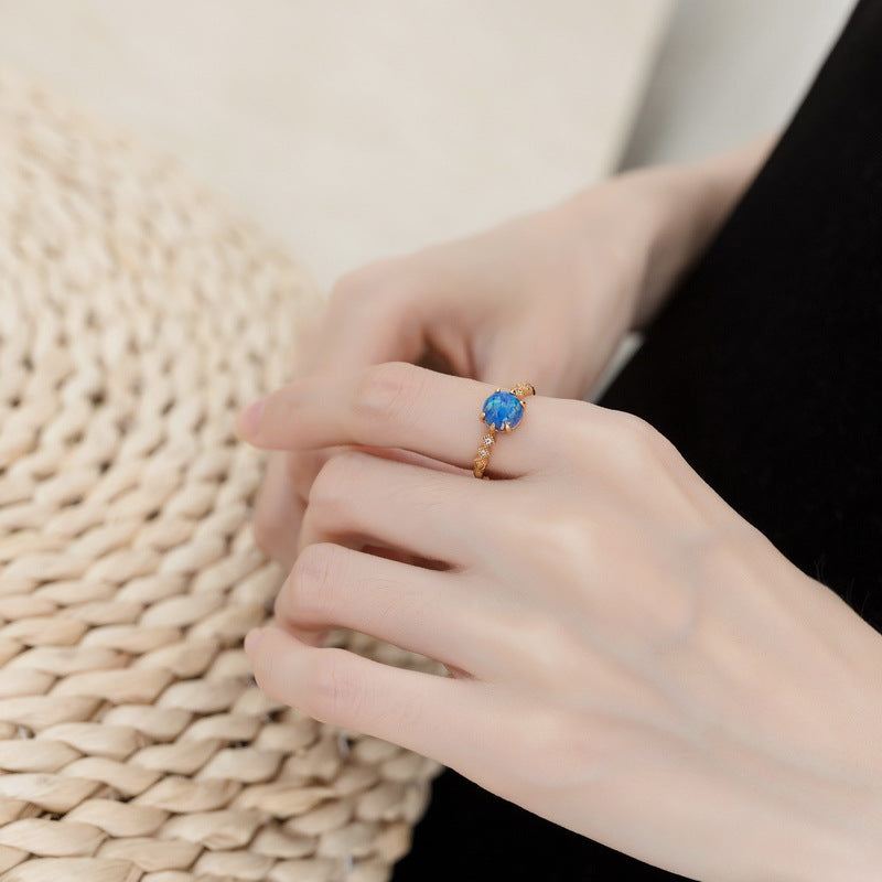 S925 Sterling Silver Jewelry Rings Blue Opal Gemstone Classical Style Refined Rings